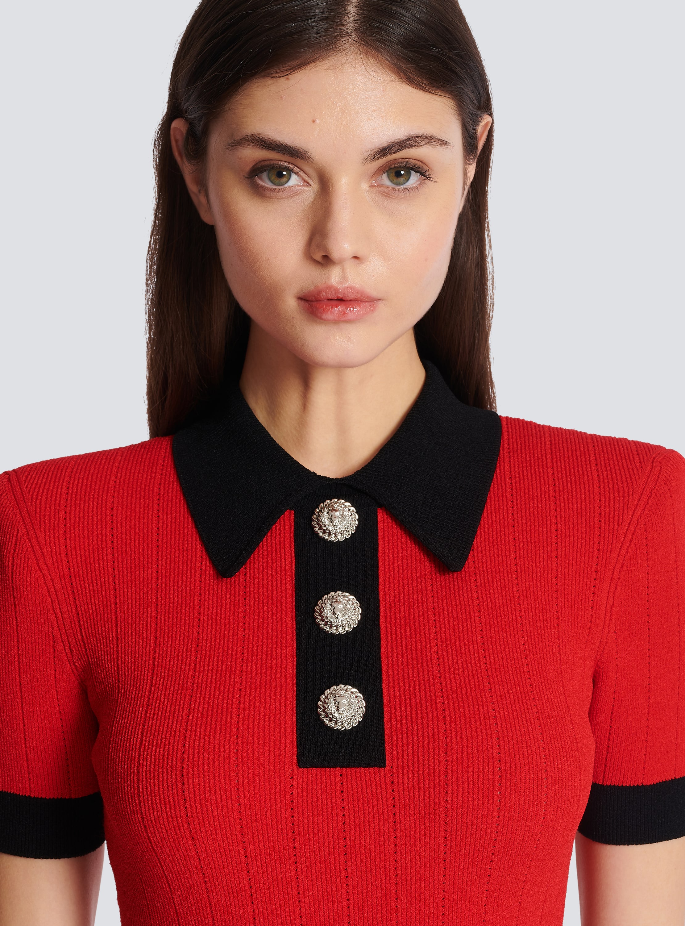 Ribbed Knit Polo Dress Red Women Balmain